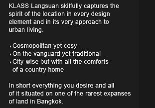 In this effervescent metropolitan atmosphere arrives KLASS Langsuan. One of the last freehold, low-rise properties in Langsuan, the second KLASS property joins KLASS Silom in offering Bangkok no less than the Champagne of Urban Living. |